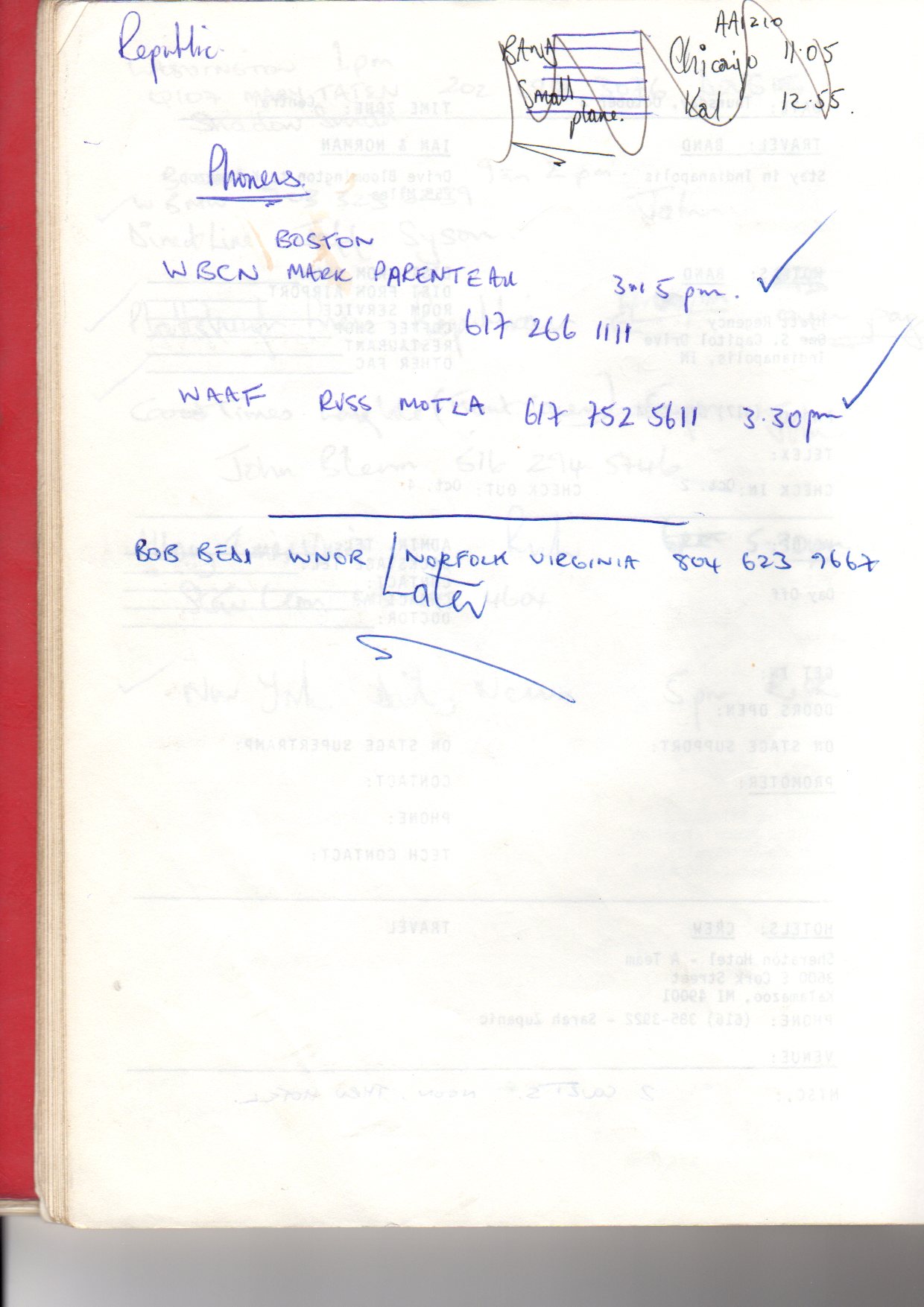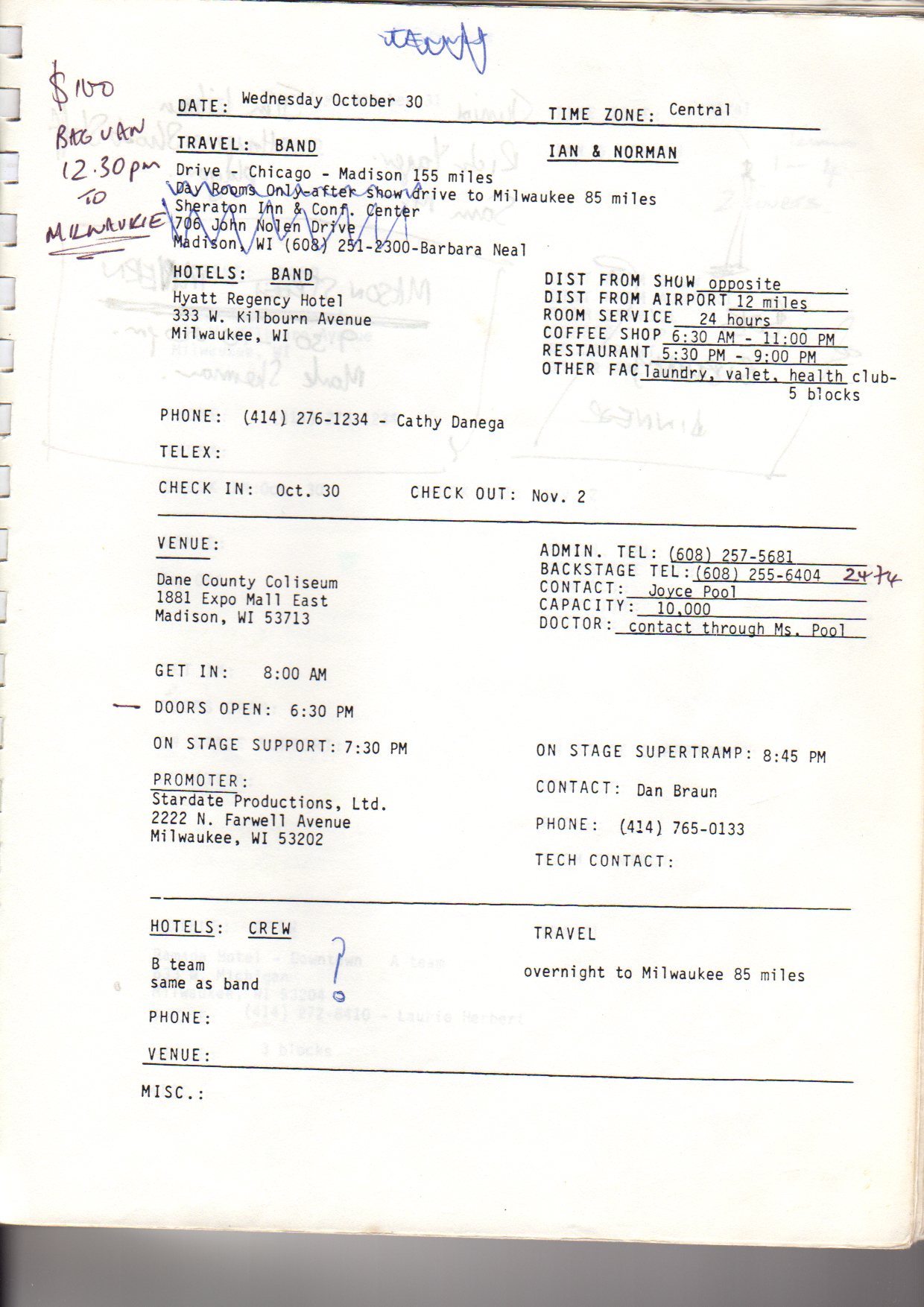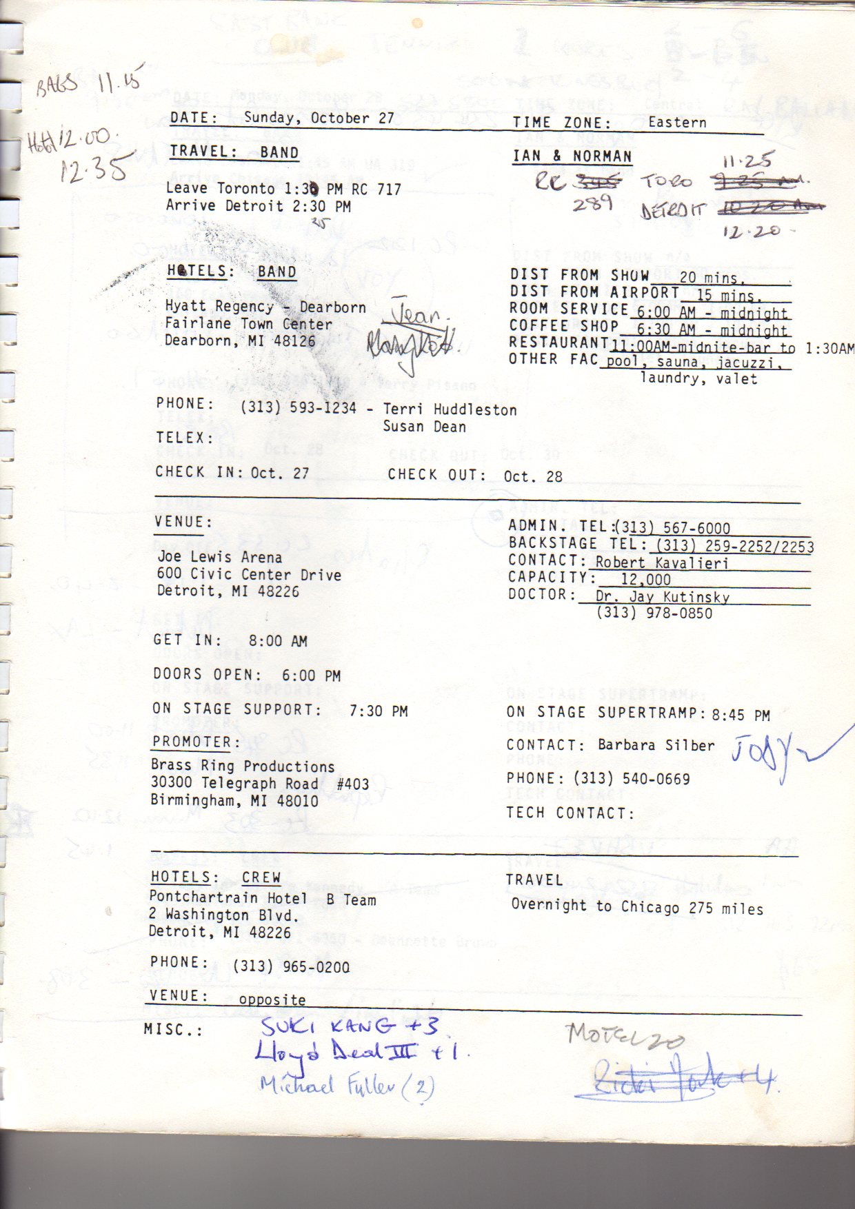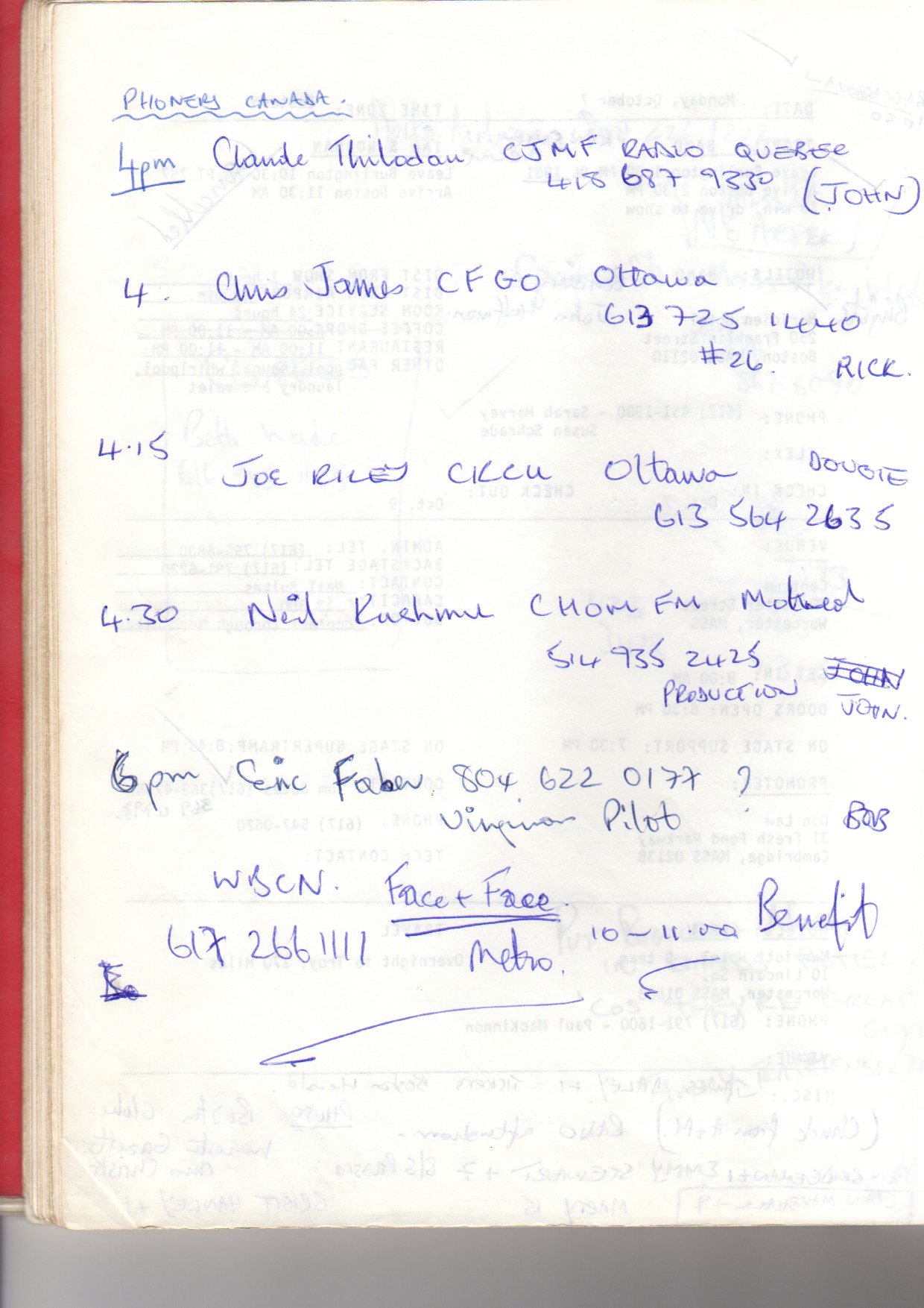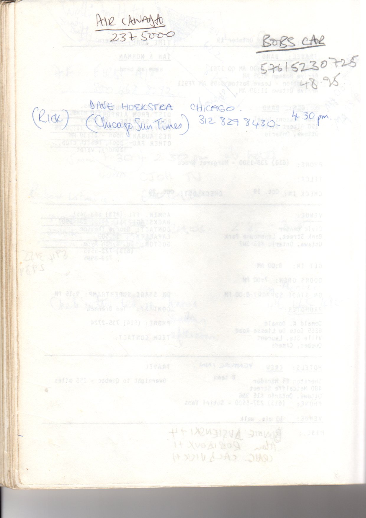 I get to stay with Rick and Sue Davies, in their home, and Sue and I set up the tour from her offices in Encino, around the corner from the house. We then travel 4000 miles to get to our first show, and we haven't left North America!!